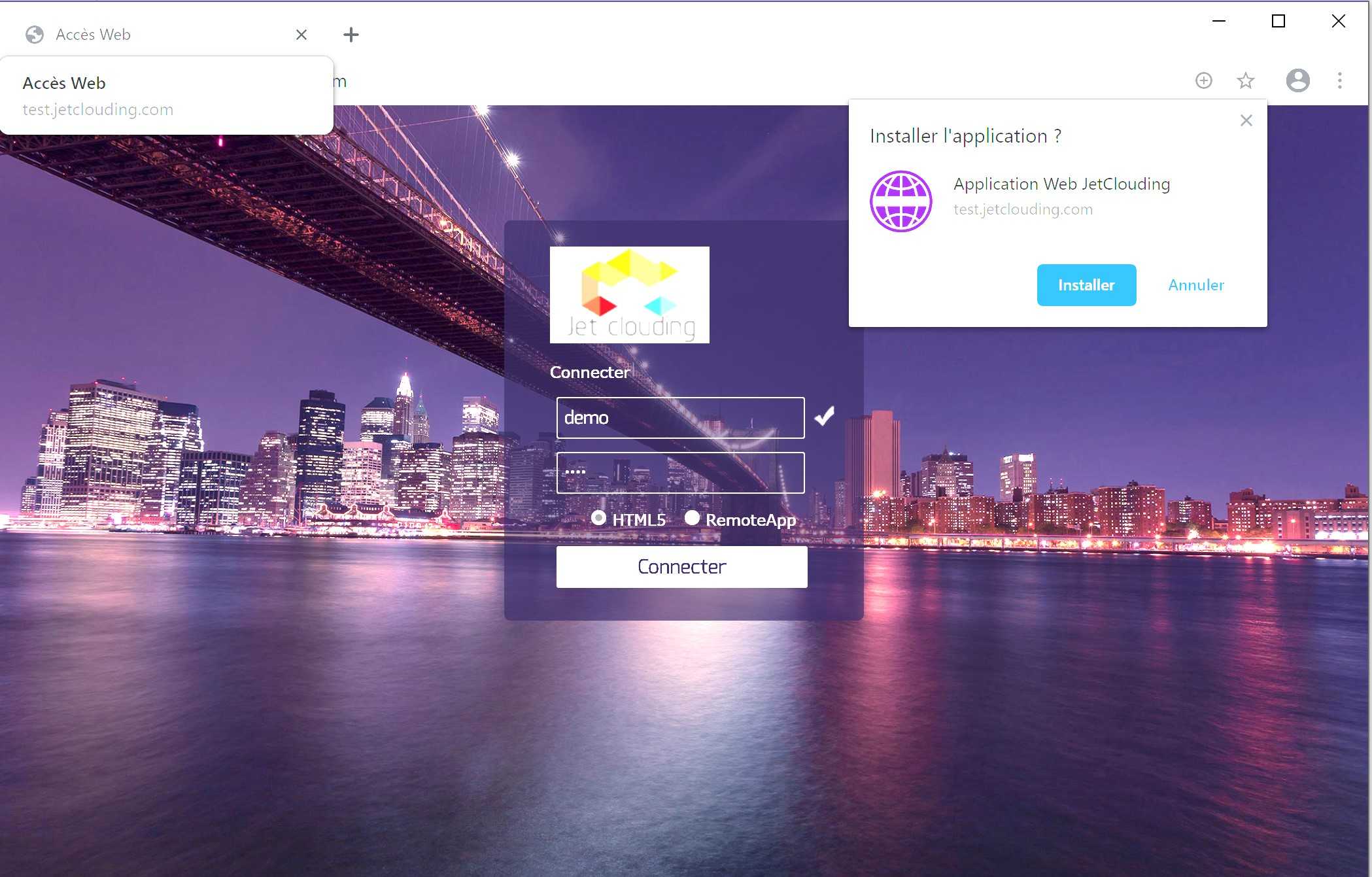 A small installer downloaded directly from the Jet Clouding web portal simplifies things, without having to search for the web application in the application stores of each operating system ecosystem.